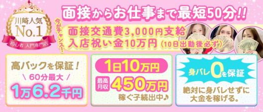 - 60分13,000円から スライド式でランクがあがればさらにバックがアップします とにかく川崎ではかなりのバック率になりま…
